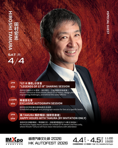 「香港汽車文化節 HK Autofest 2026」將於 4 月 4 至 5 日在亞洲國際博覽館 1 號展館舉行。今屆最重磅消息——被譽為「現代 GT-R 之父」的日產傳奇工程師田村宏志首度在港出席公開活動,出席「GT-R 傳奇」分享會親述 R35 研發歷程,同場設簽名及互動環節,對本地 GT-R 車迷嚟講絕對係一期一會。