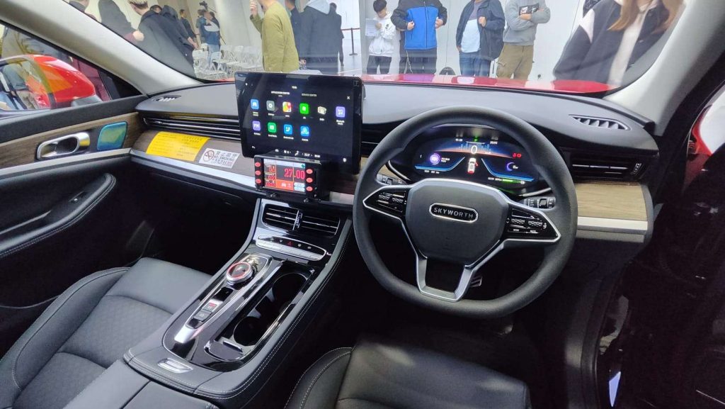 講到創維,怎少得電視,中控台設有大螢幕,有車輛控制、導航、影片觀看等功能。最注目的一定是Skyworth K的內部空間!行李廂容量可由 467 升擴展至 1,141 升,輕鬆容納 三至四個 28 吋行李箱,解決機場接送時需要Call兩架的士的煩惱。雖然空間充裕,但的士仍然只有 4 人座服務,如人數較多,則需安排兩部車輛。