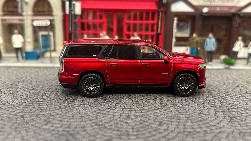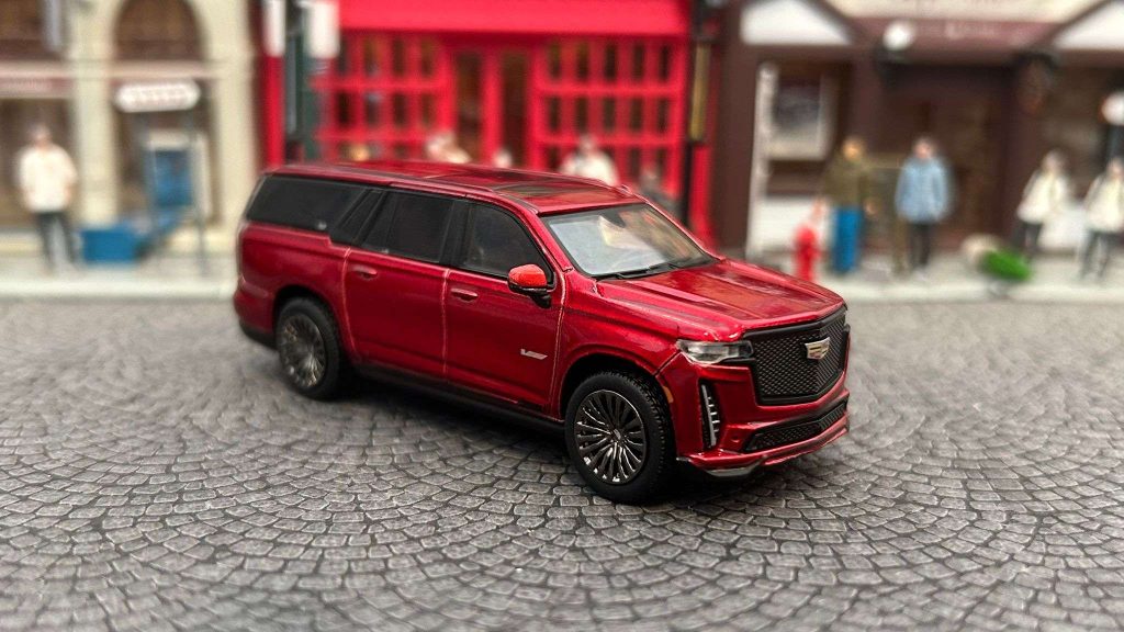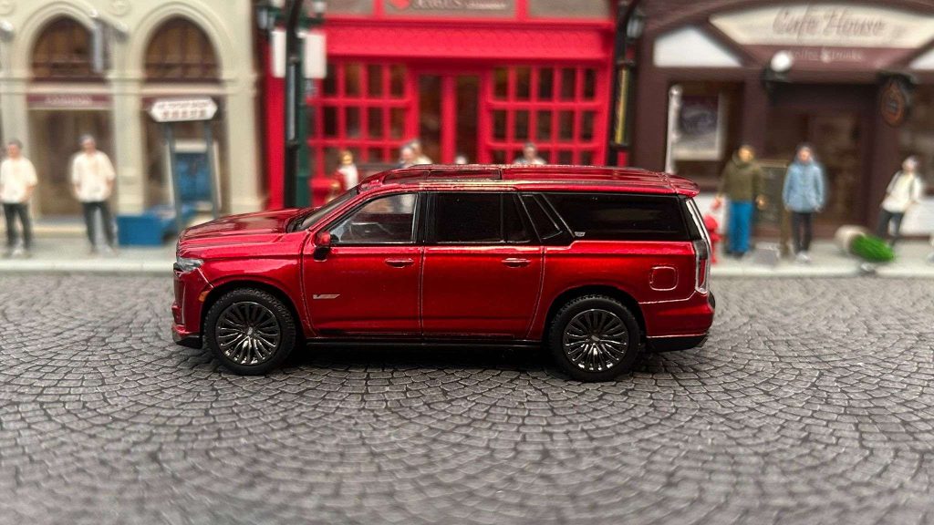 Shadow Pro的Escalade-V ESV比一般的模型車明顯更具份量,因為本身就是超大尺碼的長軸版SUV!細節方面,軚盤和門板都有細緻上色,提升了整體質感和還原度。另外,模型車的車軨也還原真車設計,留有獨特的紋路。