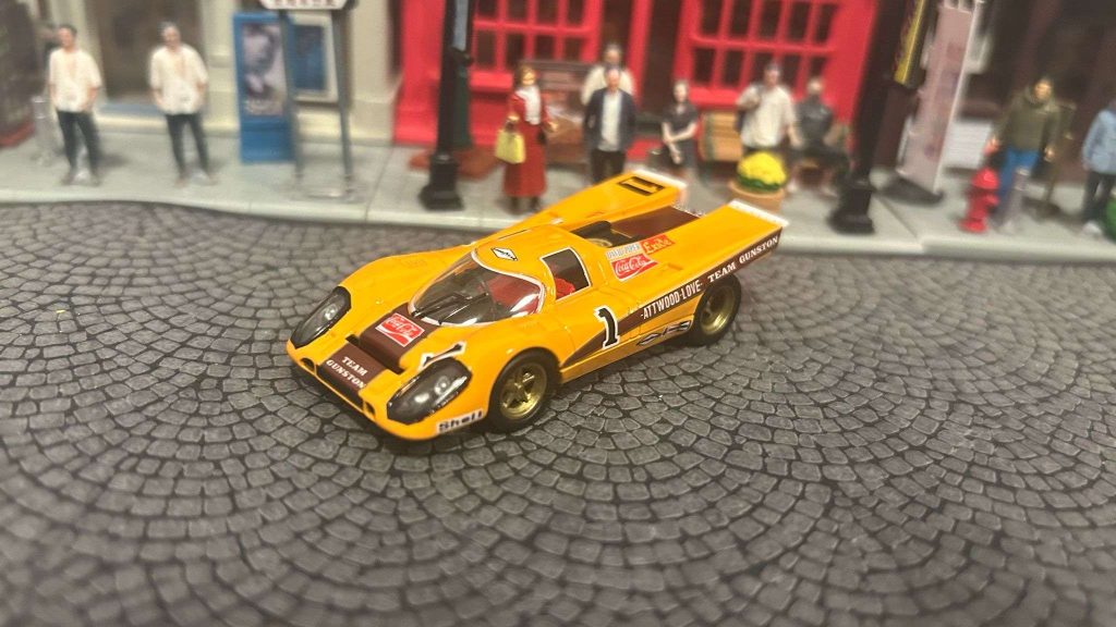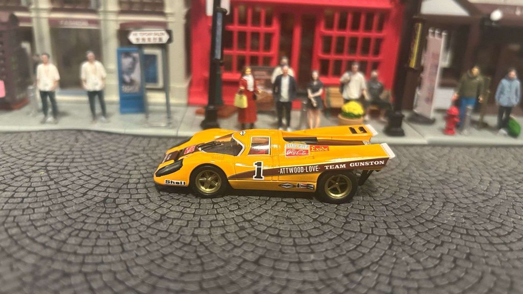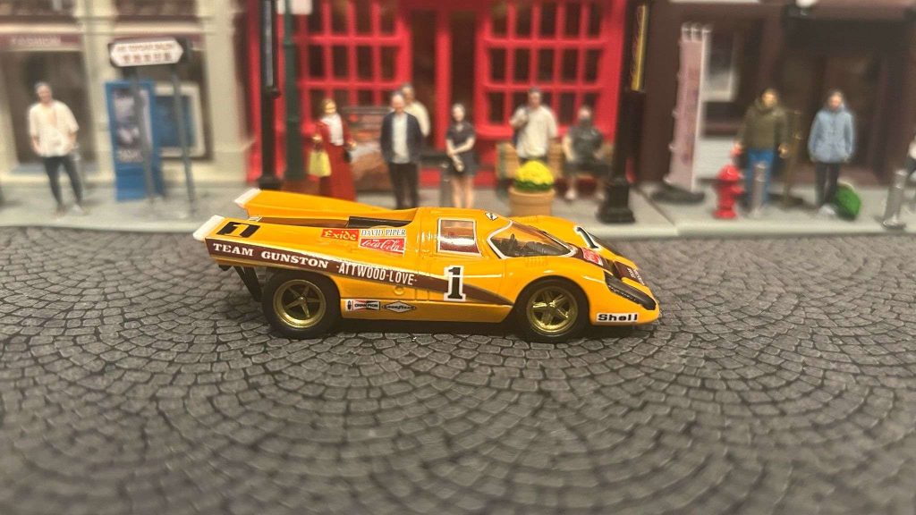 不過這款模型在細節上還有一些不足之處。例如是字體與圖標比例:車身上的字體和標誌與真車相比略有差異,尤其在比例和位置的還原上有待改善。原本小編以為頭燈外緣也是細節處理不佳,以為原車應該是幼細、圓滑的線條設計,但其實是另一場比賽的Porsche 917 K。而Porsche 917 KH的頭燈外緣確實是凌角分明,從舊照片中,小編懷疑這部Porsche 917 KH在前一場比賽中「炒車」,所以才用黑色膠紙固定頭燈。令到模型車的外緣望落較為粗糙,但其實只是還原真車!小編也是長知識了~