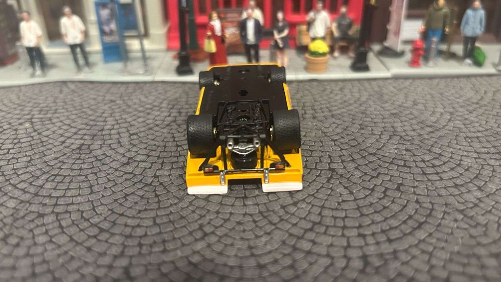 包裝方面,Sparky 採用了斜台小盒展示設計,並以下方開關固定模型車。這種設計簡單直觀,但在拆裝時需要格外小心,開關如果用力過度,可能會導致損壞或斷裂。另外,車尾的部分做了鏤空架的部分,這部分相對仔細和用心。