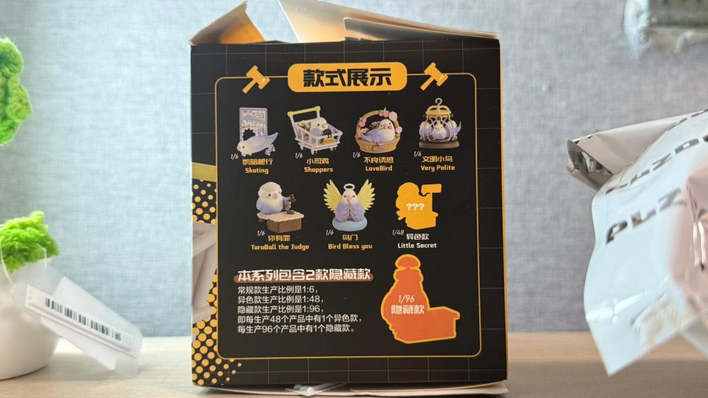 今次 PLZDOT x 小鳥芋圓推出的當代社畜系列盲盒,共有6款基本款 、1款異色款同1款隱藏款 ,每個尺寸約7~9cm。小編目標本身想抽「文明小鳥」,用來放在總編當眼的位置,不過抽到「鳥門」,都係小編排第二想抽到的款式。